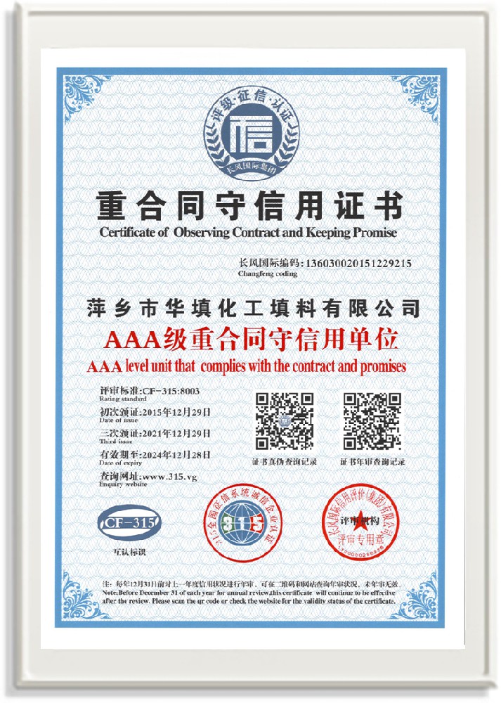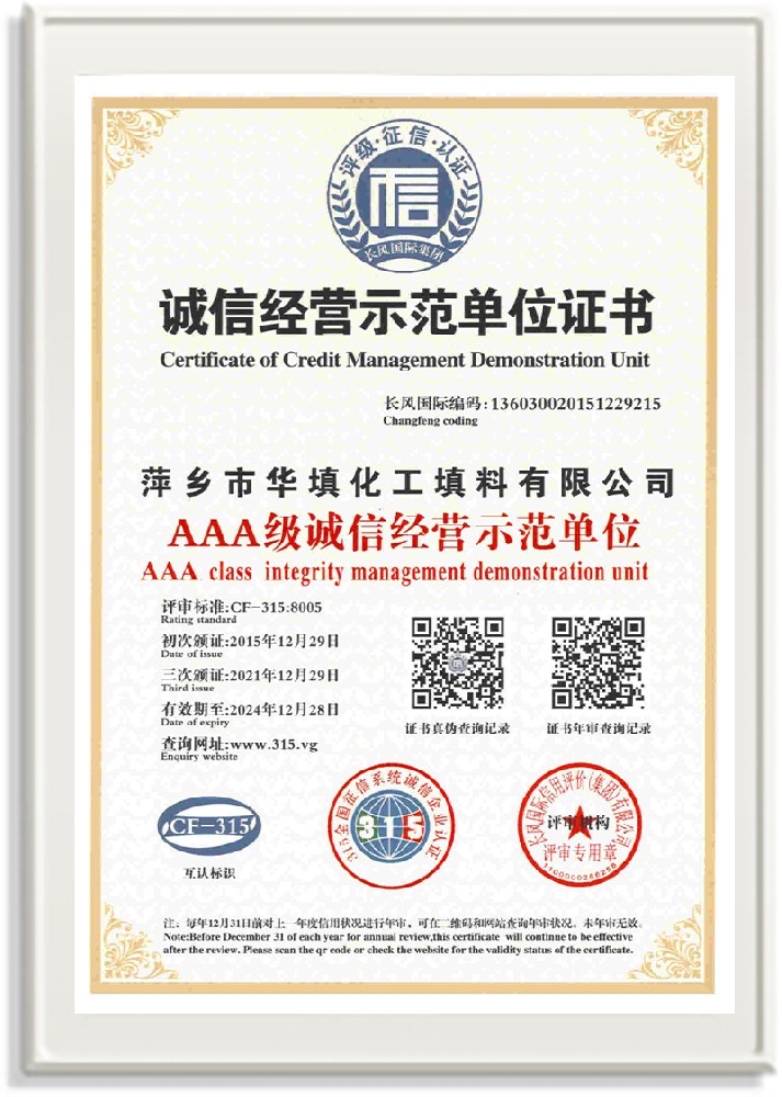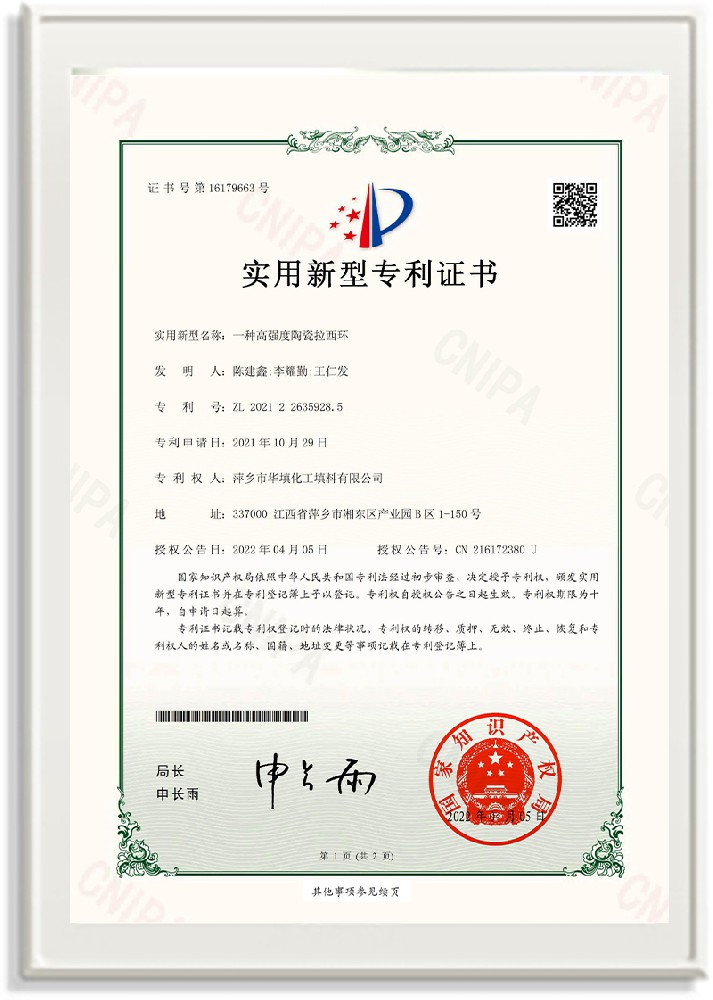 萍鄉(xiāng)市華填化工填料有限公司,位于320國道、109國道、浙贛鐵路、昌金高速公路貫穿其中,交通便利,是江西西部一顆燦爛明珠,創(chuàng)建于20世紀70年代初期,是中國石油天然氣股份有限公司“能源一號網(wǎng)”會員企業(yè)、中國石化物資采購電子商務(wù)網(wǎng)絡(luò)和中國海洋石油總公司采辦業(yè)務(wù)系統(tǒng)成員單位,是上海大學(xué)江西材料基因組工程產(chǎn)業(yè)研究院工業(yè)陶瓷產(chǎn)業(yè)創(chuàng)新聯(lián)盟基地,且通過ISO9001:2015質(zhì)量管理體系、ISO14001:2015環(huán)境管理體系、ISO45001:2018職業(yè)健康安全管理體系認證的化工填料生產(chǎn)企業(yè)。公司擁有陶瓷、塑料、金屬填料、催化劑、活性氧化鋁、分子篩等產(chǎn)品生產(chǎn)線,現(xiàn)有固定資產(chǎn)3616萬元,占地面積3.8萬平方米。公司具有悠久的生產(chǎn)歷史、雄厚的技術(shù)力量和先進的生產(chǎn)工藝設(shè)備,可生產(chǎn)工業(yè)瓷球(支撐劑)、陶瓷、金屬、塑料質(zhì)的規(guī)整、散堆化工填料及分子篩、催化劑、生化濾料、活性氧化鋁、石化助劑、活性炭、環(huán)保材料、耐火材料等系列的200多種規(guī)格型號產(chǎn)品。